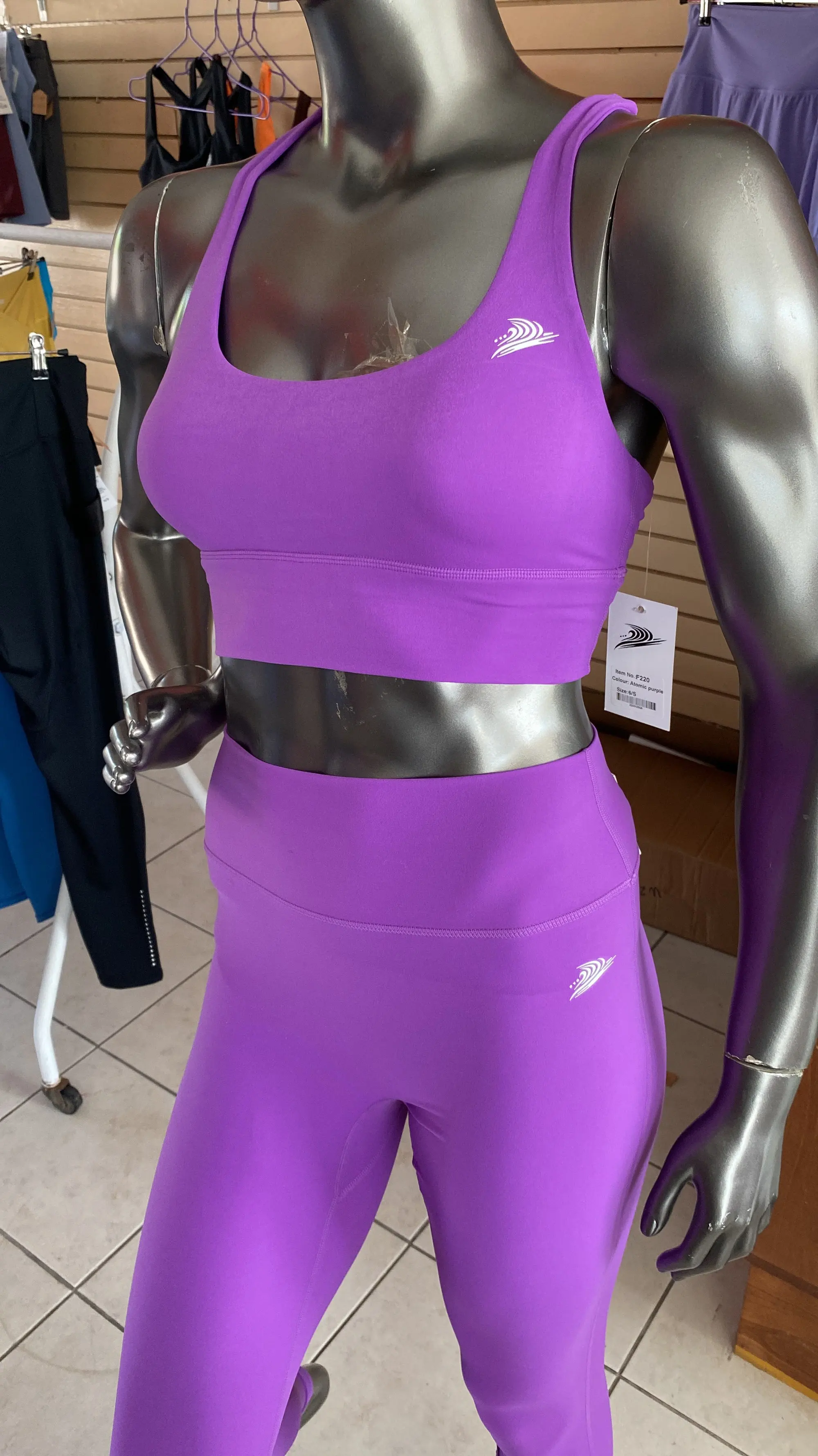 Set activewear con reggiseno con scollo a barchetta e leggings a vita alta, realizzato in 75% nylon 25% spandex per stretch, supporto e comfort.